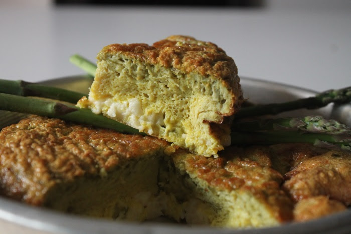 Frittata al forno con asparagi verdi e formaggio di capra semi stagionato.